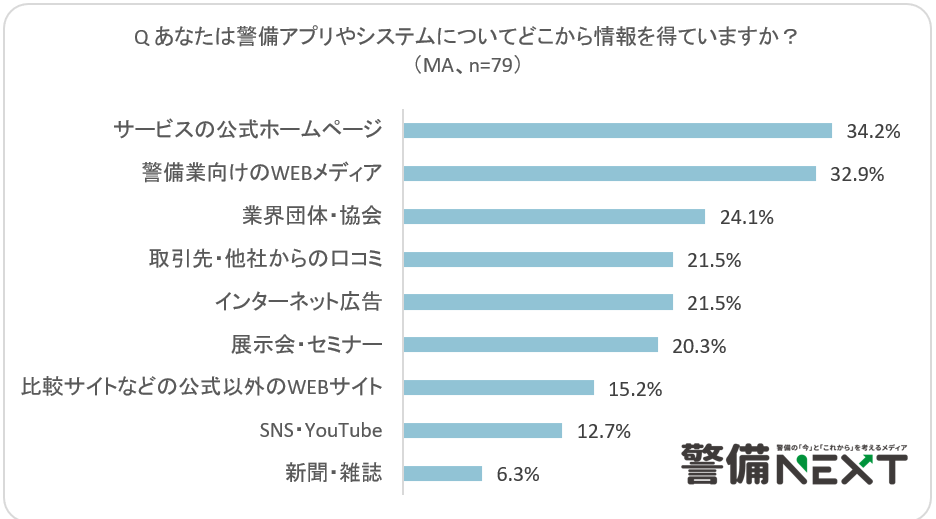 警備アプリやシステムについて、どこから情報を得ているかをたずねた結果は、次のようになりました(複数回答)。
