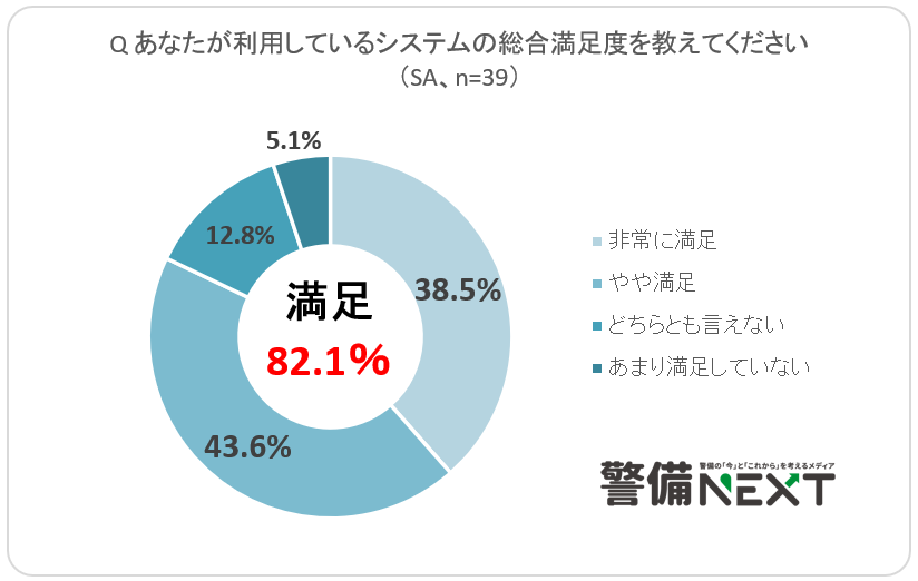 現在いずれかのシステムを利用している回答者(39名)に、総合満足度をたずねました。