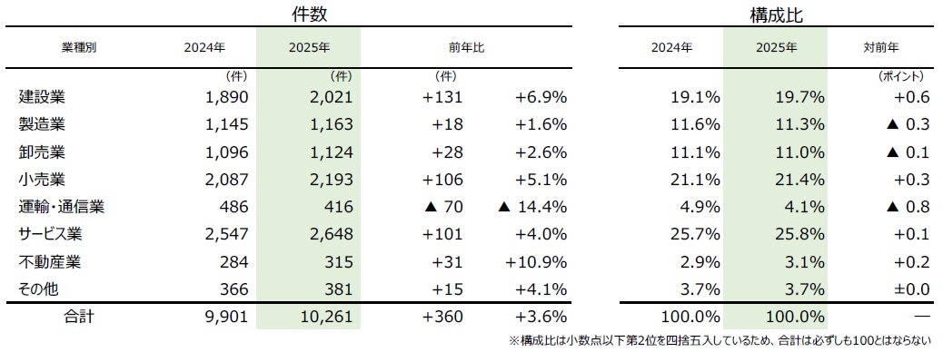 • サービス業・建設業など、人手依存度の高い業種で増加