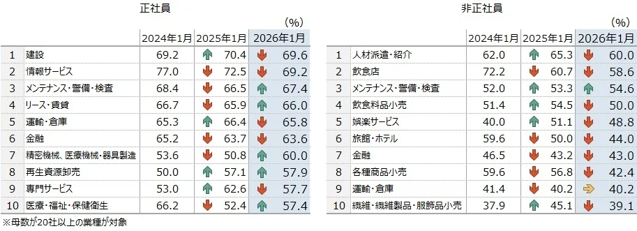非正社員不足54.6%、他業種は改善も現場職は高止まり