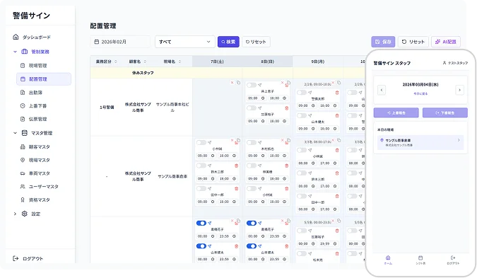 警備業の配置業務は、資格要件、欠員対応、連絡、勤怠確認など、複数の業務が重なりやすく、属人的になりやすい領域です。